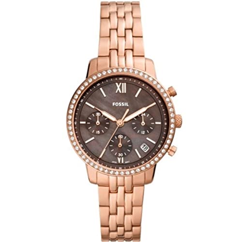 Fossil - ساعة يد بحركة كوارتز وعرض انالوج وسوار من الفولاذ المقاوم للصدأ للنساء من فوسيل، ذهبي وردي، موديل ES5218