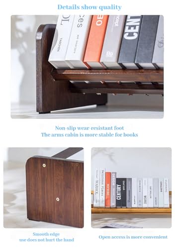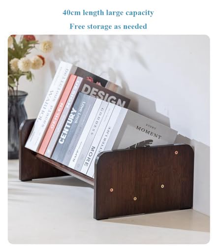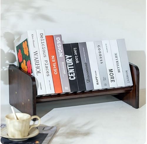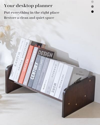 FOTN - FOTN Desktop Solid Wood Simple Book Shelf Tilted bookend, Children Tabletop Small Book Storage Rack Bookstand, Desk Student Learning Bookcase Magazine Organizer (Brown)