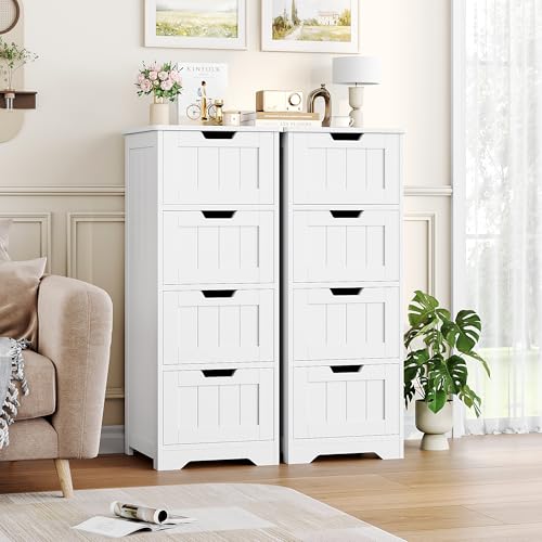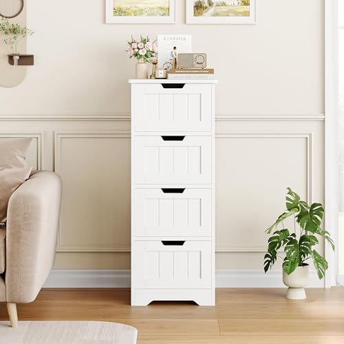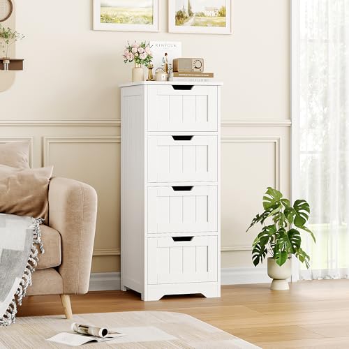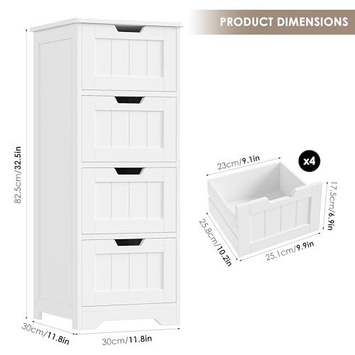 FOTOSOK - دولاب تخزين جانبي صغير مع 4 أدراج للحمام، طاولة سرير قائمة، دولاب تخزين وتنظيم للمدخل، وحدة أثاث منزلي للديكور من فوتوسوك، 29.9×29.9×82.55 سم، أبيض، خشب