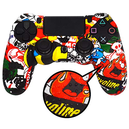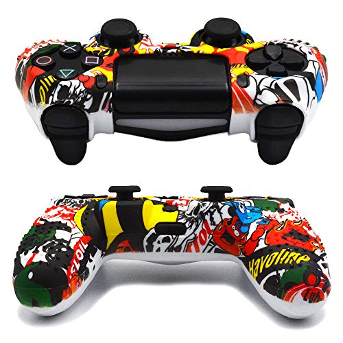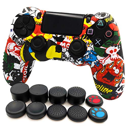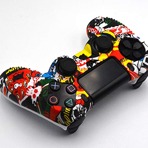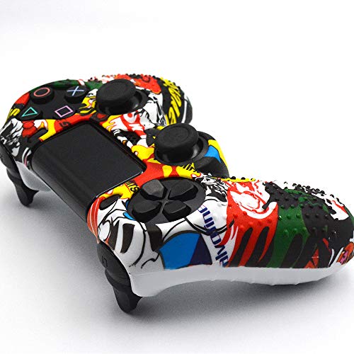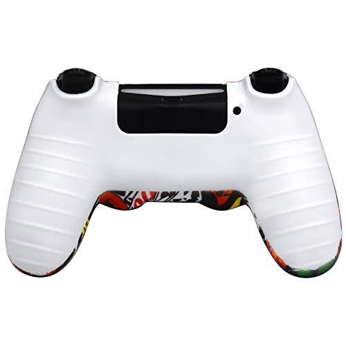 FOTTCZ - Anti-Slip Silicone with Dots on Hand Grip Skin Set, Protect for PlaySation 4 Controller (Alias Wireless DualShock 4), which 1pcs Controller Skin + 8pcs Thumb Grip Caps - Graffiti Oil
