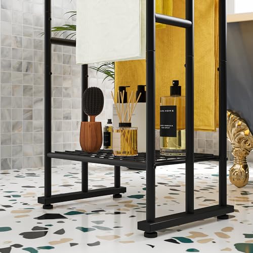 FOUBAM - حامل فوط بنمط سلم قائم مع 3 قضبان، لفوط الحمام والبطانيات موفر للمساحة ومتين، نمط صناعي، صلب من فوبام، لون أسود
