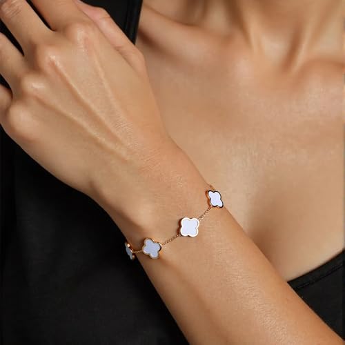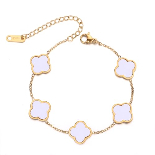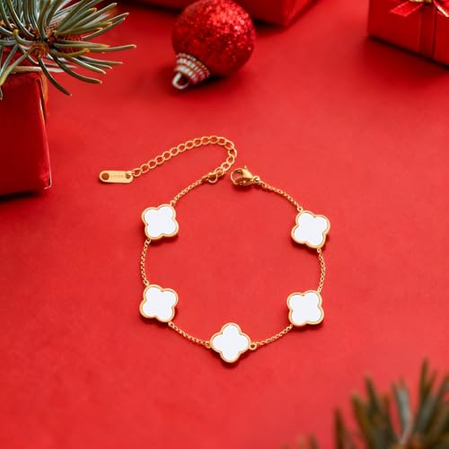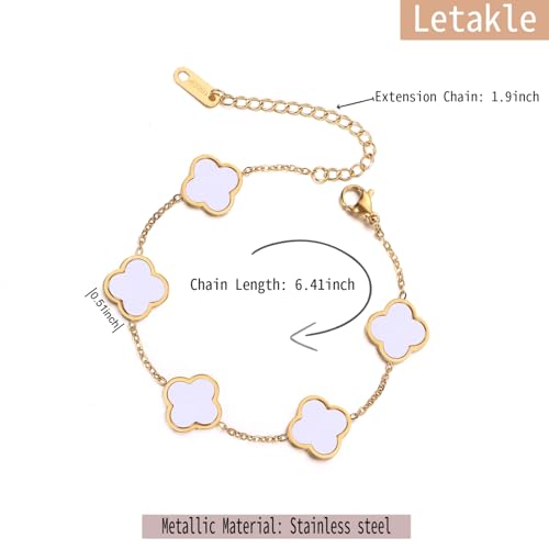 Letakle - Four Leaf Clover Bracelet 18K Gold Plated Lucky Bracelets for Women Gold Bracelets White/Gold/Black Flower Leaf Link Lucky Bracelets Jewelry Bracelets for Women Trendy Birthday Gifts for Women