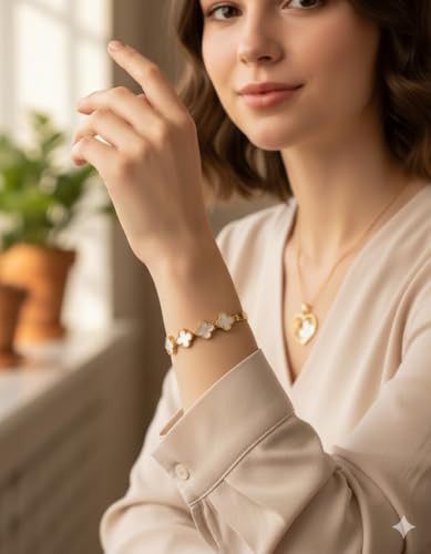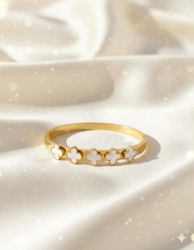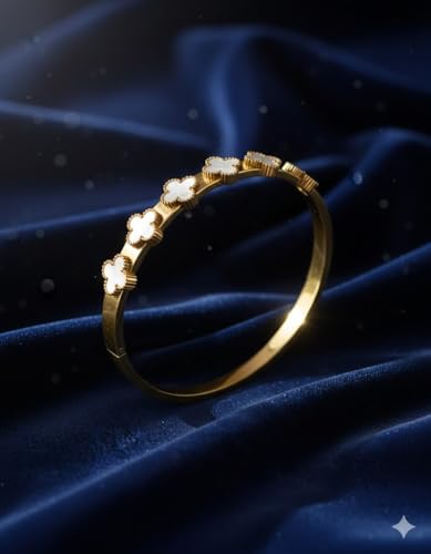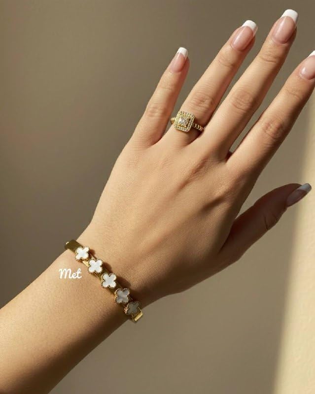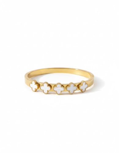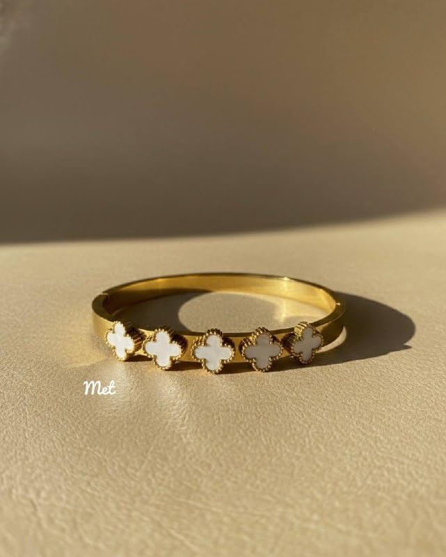 Generic - سوار باربع اوراق برسيم مطلي بالذهب للنساء، باللونين الاسود والابيض، اساور حلقية مطلية بالذهب للنساء