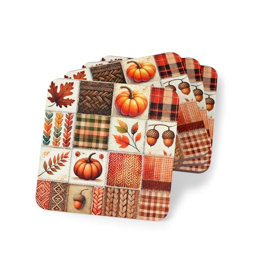 Generic - Four Pieces Autumn Pumpkin Coaster Set – Fall Leaves and Acorn Drink Coasters for Halloween Thanksgiving Decor Rubber Coasters – Elegant, Heat-Resistant & Waterproof Drink Rubber Coasters, Coaster-210