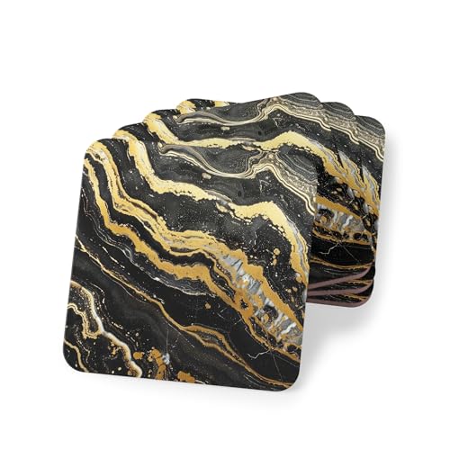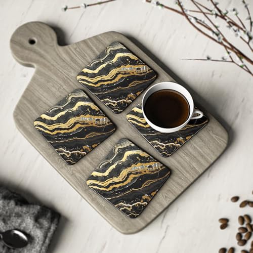 Generic - قاعدة أكواب خشبية بنمط الرخام الأسود، ديكور عطلات للمجات والأكواب، قواعد أكواب خشبية أنيقة ومقاومة للحرارة والماء،طقم من أربع قطع موديل-283