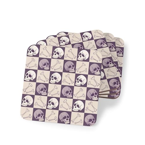 Generic - Four Pieces Checkerboard Skull and Bones Rubber Coasters – Elegant, Heat-Resistant & Waterproof Drink Rubber Coasters, Coaster-188
