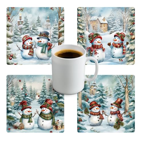 Generic - Four Pieces Christmas Wooden Coasters, Coaster Tea Cups | Coffee Mugs and Glasses Coaster for Home Kitchen Coaster-6