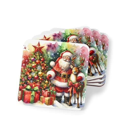 Generic - Four Pieces Classic Christmas Scene Coasters Set - Holiday Decor for Mugs & Cups – Elegant, Heat-Resistant & Waterproof Drink Wood Coasters, Coaster-264