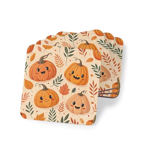 Generic - Four Pieces Cute Pumpkin with a Fun Fall Design Rubber Coasters – Elegant, Heat-Resistant & Waterproof Drink Rubber Coasters, Coaster-185