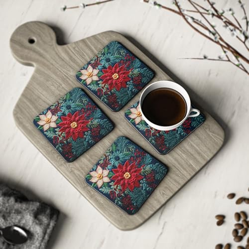 Generic - Four Pieces Elegant Floral Coaster Set – Beautiful Flower Design for Home Décor and Coffee Tables Rubber Coasters – Elegant, Heat-Resistant & Waterproof Drink Rubber Coasters, Coaster-214