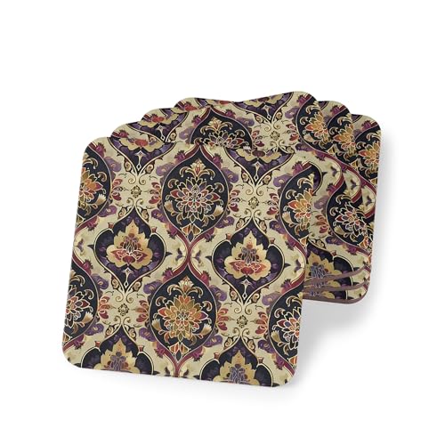 Generic - قواعد أكواب خشبية طراز 104، بنمط فارسي لرمضان بتصميم كلاسيكي ريفي أنيق خشبي مع لمسة جمالية عتيقة للمشروبات، قاعدة أكواب، مجموعة من 4 قطع