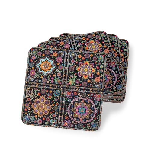 Generic - Four Pieces Ramadan Persian Pattern Wooden Coasters, Rustic Vintage Coasters – Elegant Wooden Drink Mats with Antique Aesthetic - Set of 4 - Coaster-97