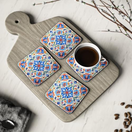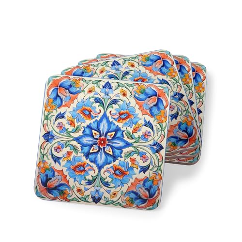 Generic - Four Pieces Ramadan Persian Patterns Vintage Floral Rubber Coasters – Elegant, Heat-Resistant & Waterproof Drink Rubber Coasters, Coaster Tea Cups - Coffee Mugs and Glasses Coaster-165