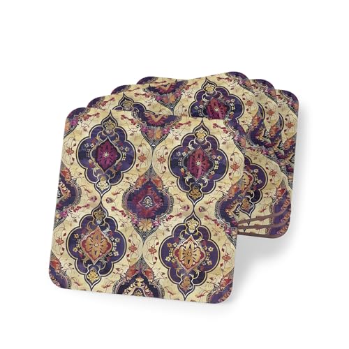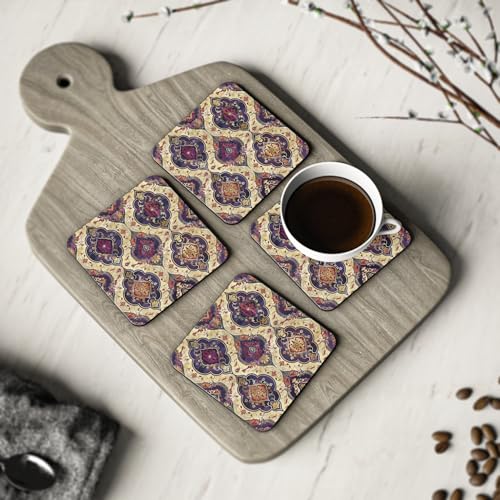Generic - Four Pieces Ramadan Persian Patterns Vintage Floral Rubber Coasters – Elegant, Heat-Resistant & Waterproof Drink Rubber Coasters, Coaster Tea Cups - Coffee Mugs and Glasses Coaster-98