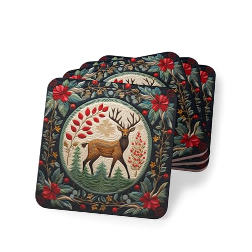 Generic - طقم قواعد اكواب للكريسماس بتصميم حيوان الرنة مكون من 4 قطع - قواعد اكواب مطاطية لطيفة لديكور المنزل في الشتاء وهدايا - قواعد اكواب مطاطية انيقة ومقاومة للحرارة والماء، قاعدة اكواب -219