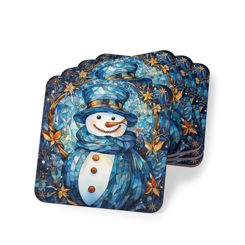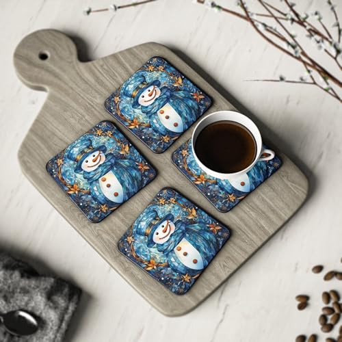 Generic - طقم قواعد اكواب بتصميم رجل الثلج للكريسماس مكون من 4 قطع - قواعد اكواب مشروبات شتوية لطيفة لتزيين العطلات - قواعد اكواب خشبية انيقة ومقاومة للحرارة ومقاومة للماء، قواعد اكواب - 224