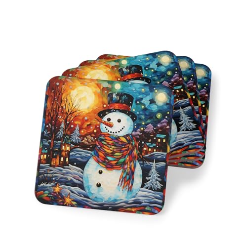 generic - Four Pieces Snowman Christmas Coasters Set - Holiday Decor for Mugs & Cups – Elegant, Heat-Resistant & Waterproof Drink Rubber Coasters, Coaster-258