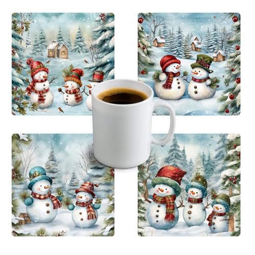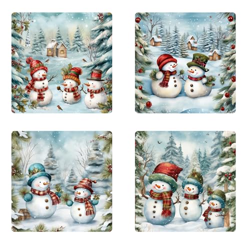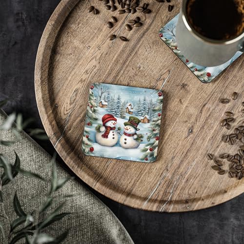 Generic - Four Pieces Snowman Christmas Wooden Coasters, Coaster Tea Cups | Coffee Mugs and Glasses Coaster for Home Kitchen Coaster-8