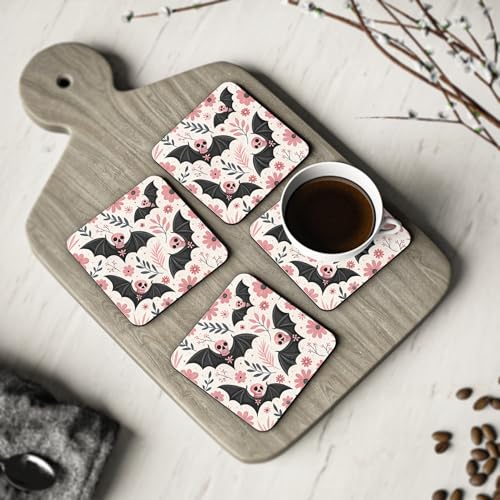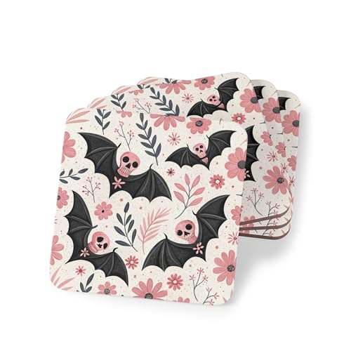 Generic - قواعد اكواب مطاطية بتصميم جماجم وخفافيش وردية من 4 قطع - قواعد اكواب مطاطية انيقة ومقاومة للحرارة والماء، قواعد اكواب مطاطية للمشروبات -180