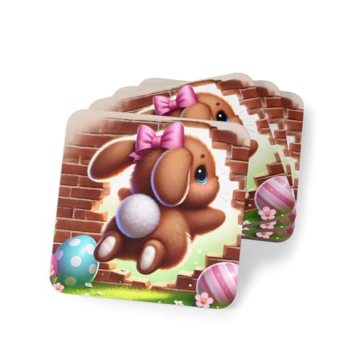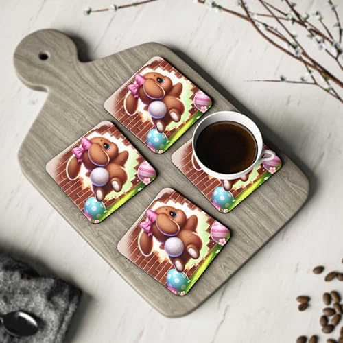 Generic - Four Pieces Whimsical Rabbit Bursting Through Fence with Easter Eggs Coaster Set - Holiday Decor for Mugs & Cups – Elegant, Heat-Resistant & Waterproof Drink Rubber Coasters