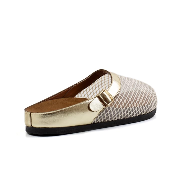 Fourteen - Fourteen Women's Fashionable Leather Mules Shoes Multicolor Gold, 38 EU