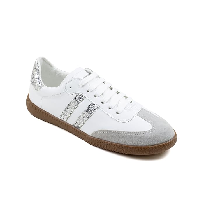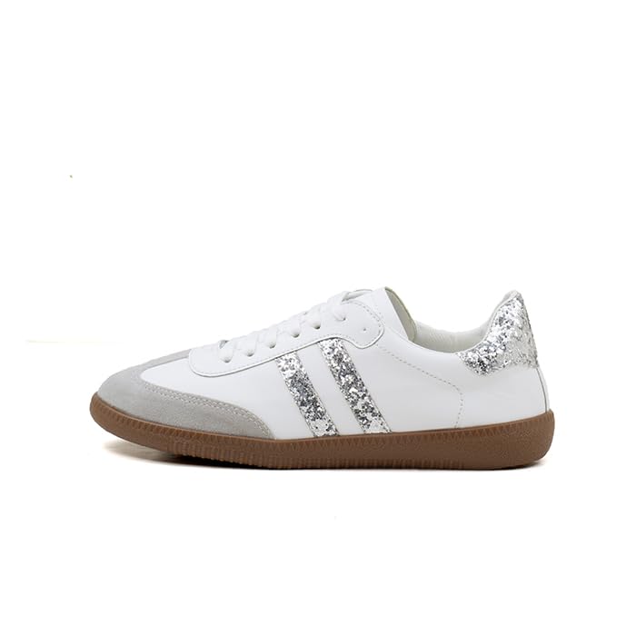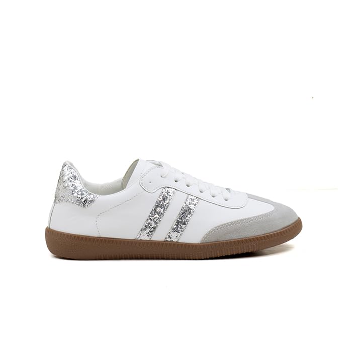 Fourteen - فورتين -YT0303140842037 - حذاء رياضي كاجوال برباط وخطين للنساء-مختلط-ابيض-فضي-EU37، M