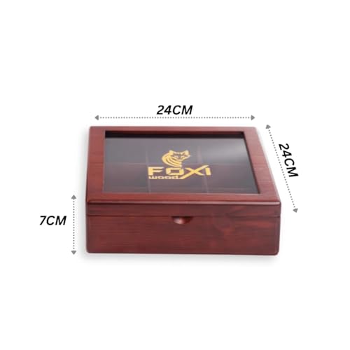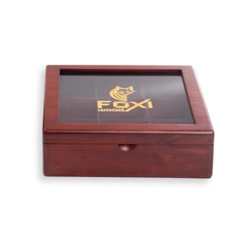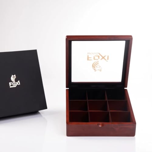 FoxiWood - Premium 9-Slot Wooden Tea Box, Rich Red Brown Finish