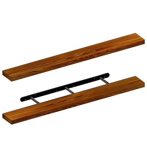 foxsky - ارفف عائمة من خشب الصنوبر الصلب مقاس 72 انش من فوكس سكاي للحائط مع دعامات مخفية، رف ريفي يثبت على الحائط للحمام وغرفة المعيشة وغرفة النوم والمطبخ وديكور المكتب (خشب البلوط العسل)