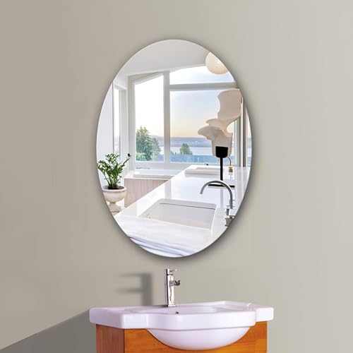 Generic - Frameless Contemporary Oval Mirror, Wall Mounted Mirror with Clear Finish, 15 x 18 Inches, Perfect for Easy Beauty Routines and Elegant Home Aesthetics and Mirror Paper