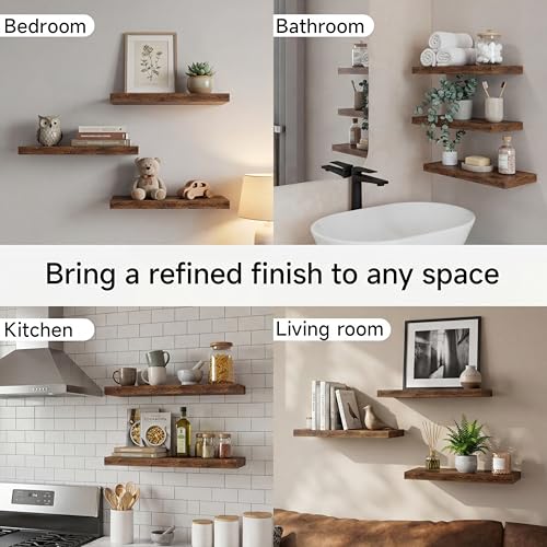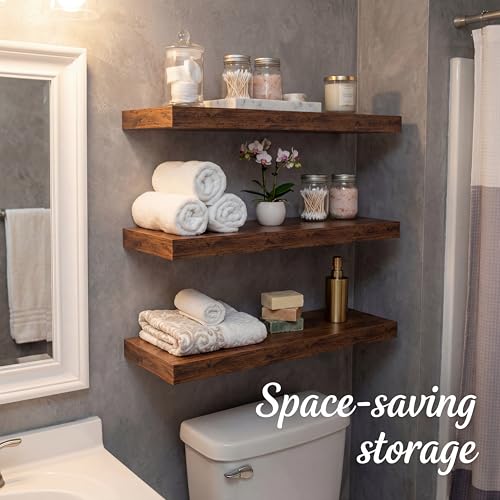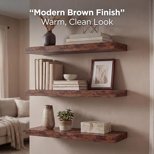 - لمسة نهائية بنية عصرية - أنيقة ولا تتأثر بمرور الزمن، مصممة بلون بني جوزي دافئ، تجمع هذه الأرفف المعلقة الأنيقة بين السحر الريفي والجماليات الحديثة - مثالية لغرف المعيشة أو المطابخ أو غرف النوم أو الحمامات.