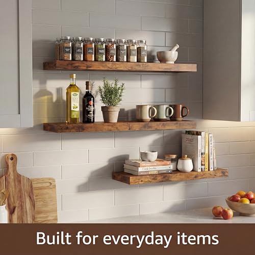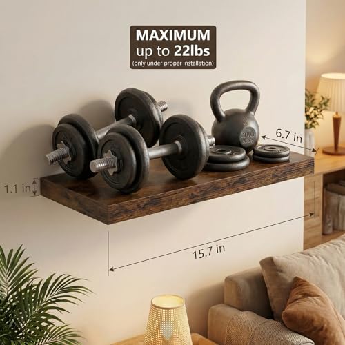 franko21 - ارفف عائمة للجدار من فرانكو 21، مجموعة من 3-15.7 انش خشبية تثبت على الحائط، تصميم عصري ريفي مع دعامات مخفية، مثالية لغرفة النوم والحمام والمطبخ وغرفة المعيشة بسعة 22 باوند