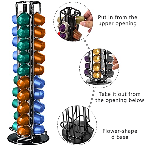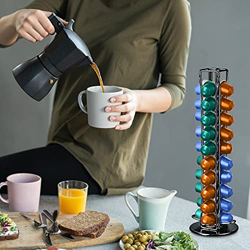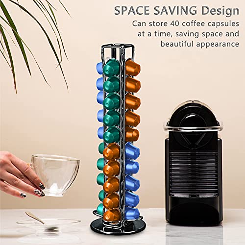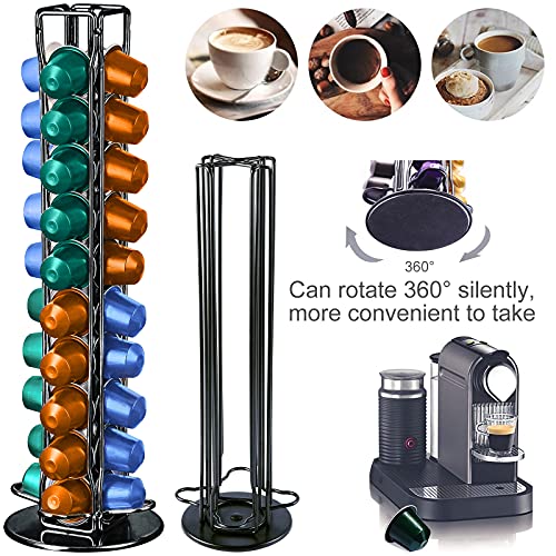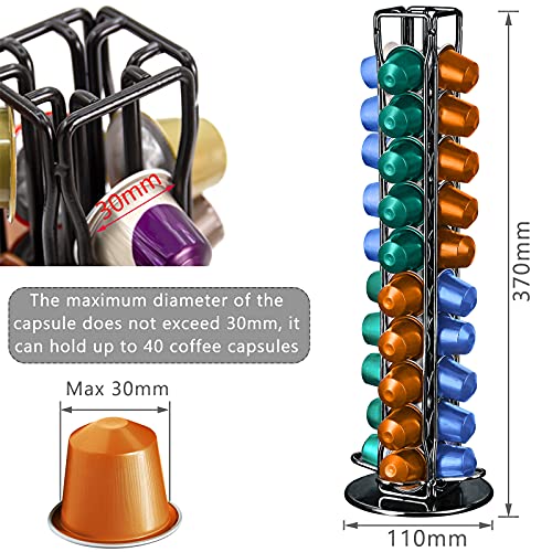 Frasheng - Frasheng Coffee Capsule Holder, 360 Rotating Coffee Capsule Stand, Coffee Capsule Dispenser, Chrome Capsule Holder, for 40 Capsules, Durable, Space-Saving, No Capsules, Black