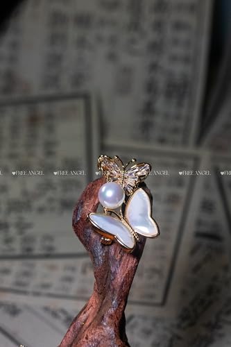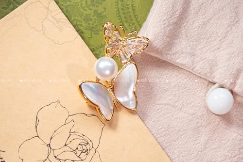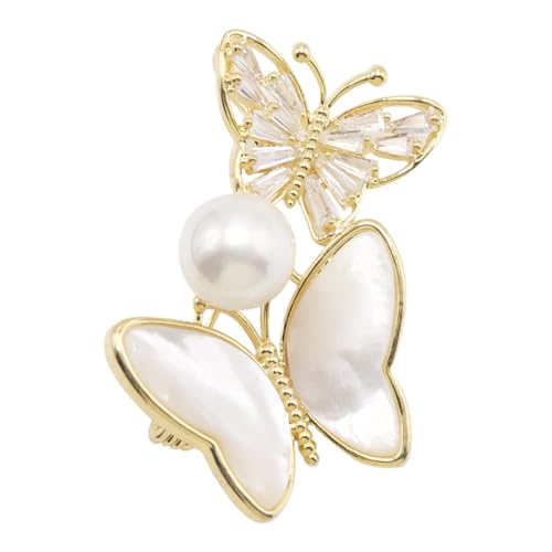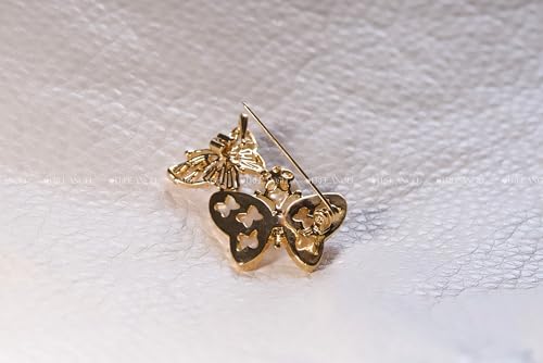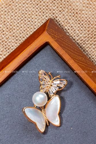 FreeAngel - دبوس بروش لؤلؤي مزدوج على شكل فراشة من فري انجل مطلي عيار 18 قيراط من لؤلؤ صدف المياه المالحة الطبيعية، انيق ولطيف وعصري وعصري للمدخل وحفلات الزفاف، بروش ذهبي