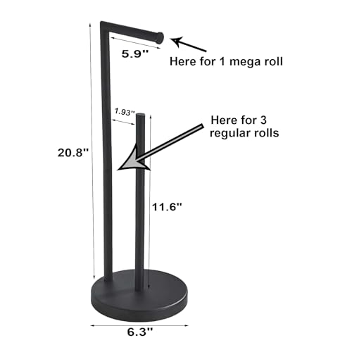 - 【مساحة إضافية لـ 4 لفات】: تم تصميم حامل ورق التواليت القائم لدينا ليتناسب مع لفافات التواليت الأكبر والأثقل وزنًا بكل سهولة. بفضل بنائه المتين وتصميمه الواسع، يضمن توفير إمداد مستمر من ورق التواليت دون القلق من نفاده. ابق مستعد ولا تفاجأ أبدًا بنفاد الورق.