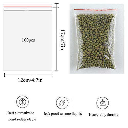 FANSIR - اكياس تخزين بلاستيكية شفافة قابلة لاعادة الاستخدام محكمة الاغلاق سميكة ومتينة بسوستة تغلق بالضغط من البولي ايثيلين مثالية لتخزين الطعام والحرف من 100 قطعة، مقاس 17 × 12 سم