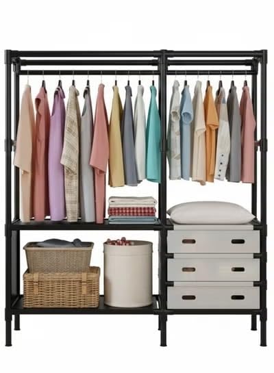 Generic - Freestanding closet organizer, sturdy wardrobe organizer, portable clothes rack, modern open wardrobe, versatile hanging rack with shelves and storage boxes for organizing clothes black