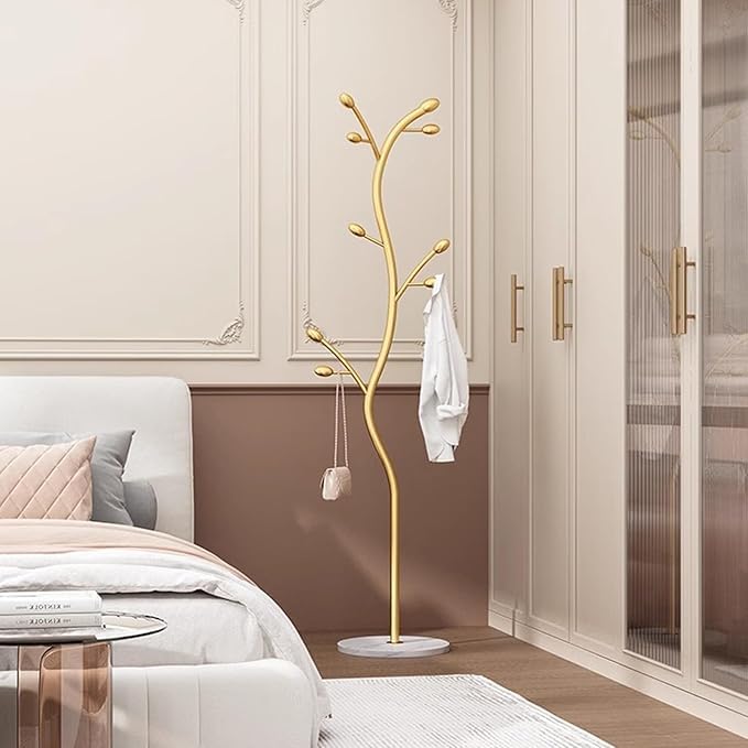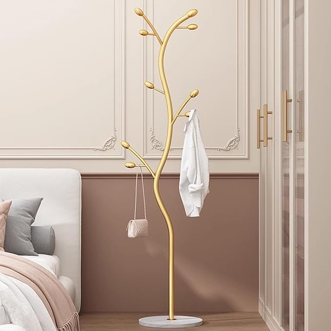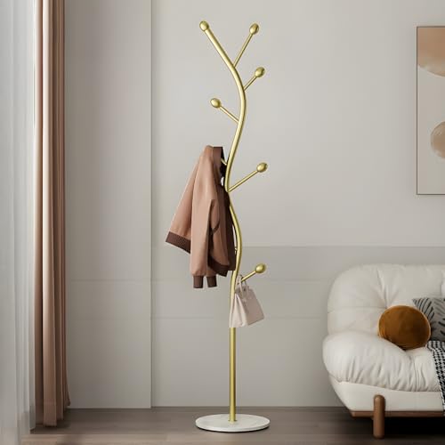 Generic - Freestanding Garment Rack Coat Tree Stand With Marble Base Metal Clothing Hanger Organizer 9 Hooks For Jackets Hats Scarves Entryway Bedroom Office Storage Furniture (Gold)