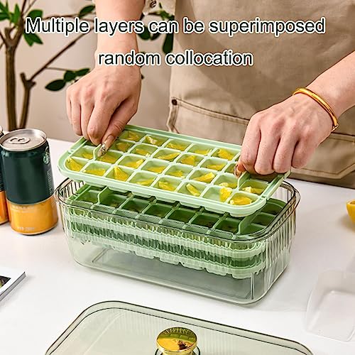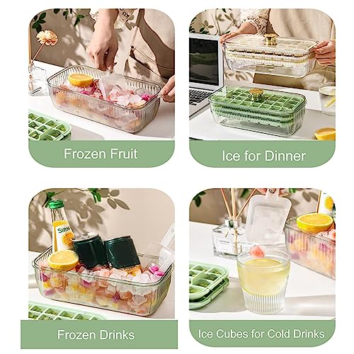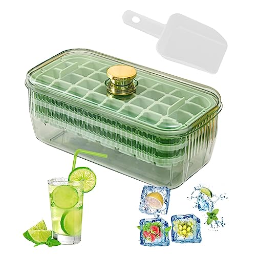 - 🌺2 Stacking Trays: With 2 stacking trays and a lid, this ice cube tray with container can store up to 48 ice cubes in a compact space. The ice scoop makes the pick of ice hassle-free and sanitary.