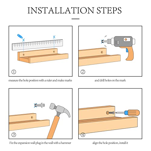 - التصميم: الأرفف العائمة مصنوعة بنسبة 100% من الخشب الصلب ومصنوعة يدويًا. يوجد برغيان على الظهر لتعزيزها، مما يجعلها أكثر متانة. يتميز الخشب المصقول يدويًا بحبيبات خشبية محدبة مقعرة ومظهر كلاسيكي مصنوع يدويًا، مما يجعل الرفوف مثل الطراز الريفي القديم، ويمكن مطابقتها مع معظم أنماط الديكور.