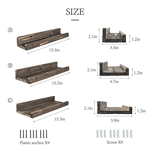 - المقاس: تأتي الأرفف العائمة بثلاثة أحجام مختلفة، A:15.5×3.5×2.1 B:15.5×4.7×2.1 C:15.5×5.9×2.1