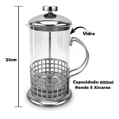 H-Home - French Coffee Maker Pressure French Press Stainless Steel And Glass 600 Ml