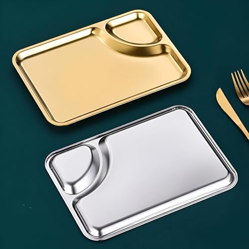 Generic - صحن مقسم للبطاطس المقلية والدجاج صحون مقسمة للأطفال آمنة بفواصل مرنة من الفولاذ المقاوم للصدأ للوجبات الخفيفة قابلة متعددة الألوان 1 قطعة
