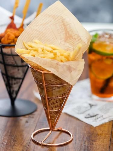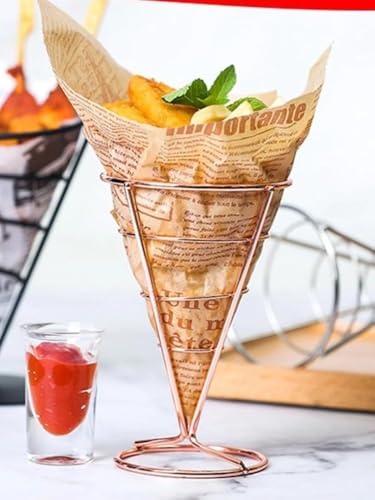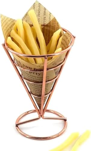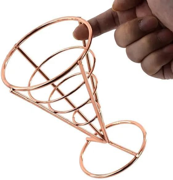 - STYLISH DESIGN: Rose gold metal cone-shaped basket stand with an elegant spiral frame design, perfect for serving and displaying french fries or snacks