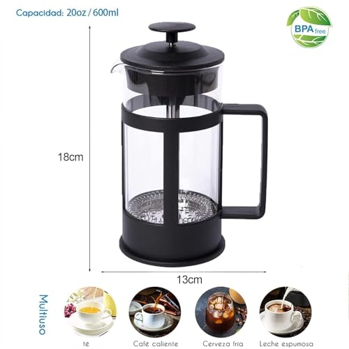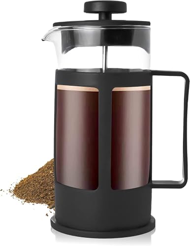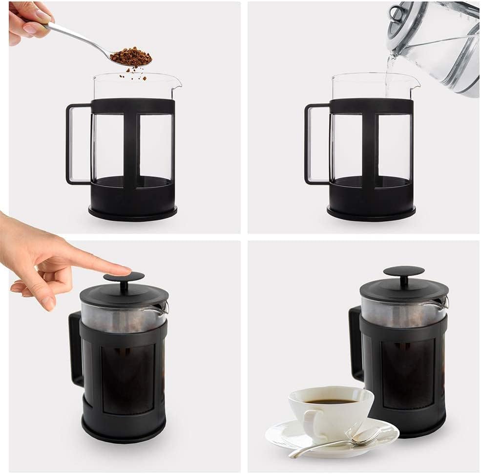 Generic - ماكينة تحضير القهوة والشاي الفرنسية لتحضير القهوة بزجاج بوروسيليكات وفلتر من الفولاذ المقاوم للصدأ متينة ومقاومة للحرارة، أسود (350 مل)