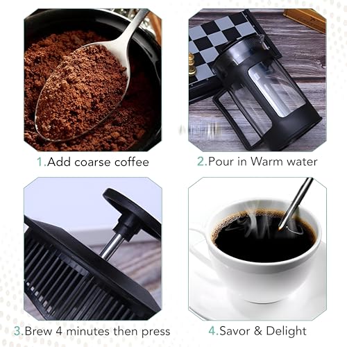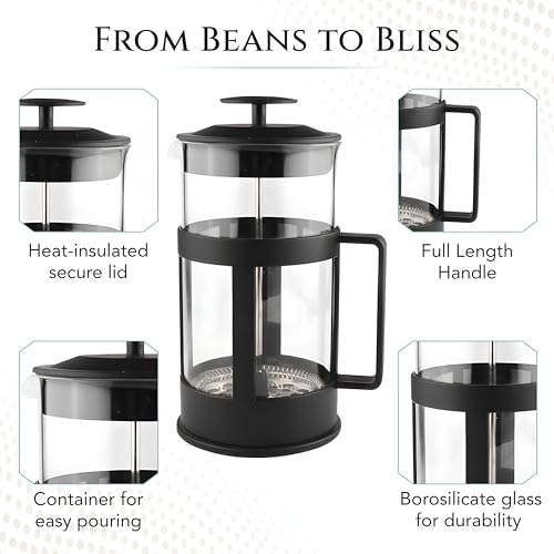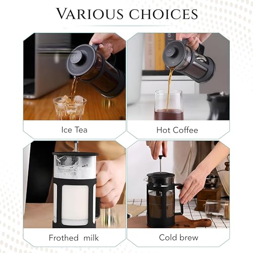 - مع ماكينة تحضير القهوة الفرنسية الخاصة بنا، يمكنك التحكم الكامل في وقت التخمير ودرجة حرارة الماء وكمية القهوة أو الشاي المستخدمة. تتيح لك هذا أمكانية التخصيص هذه أن تعد قوة ومذاق مشروبك حسب تفضيلاتك الشخصية، مما يعزز تجربتك العامة.