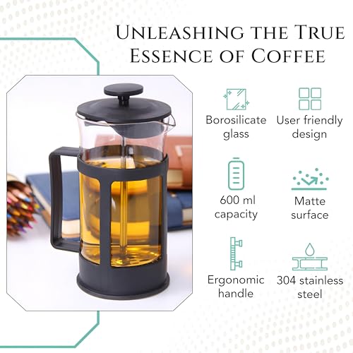 Generic - ماكينة قهوة فرنش برس - زجاج بوروسيليكات سعة 600 ملليلتر مع فولاذ مقاوم للصدأ، مثالية لتحضير الشاي والقهوة بفلتر مزدوج
