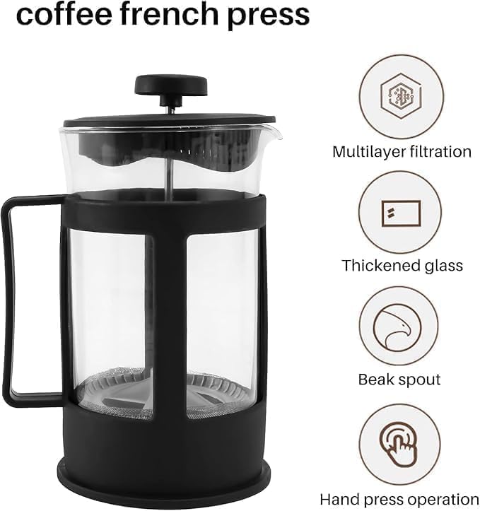 - ماكينة تحضير القهوة الفرنسية سهلة الفك للتنظيف الشامل، مما يضمن لك الاستمتاع بالقهوة الطازجة واللذيذة بأقل جهد.