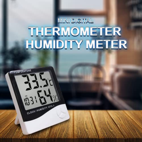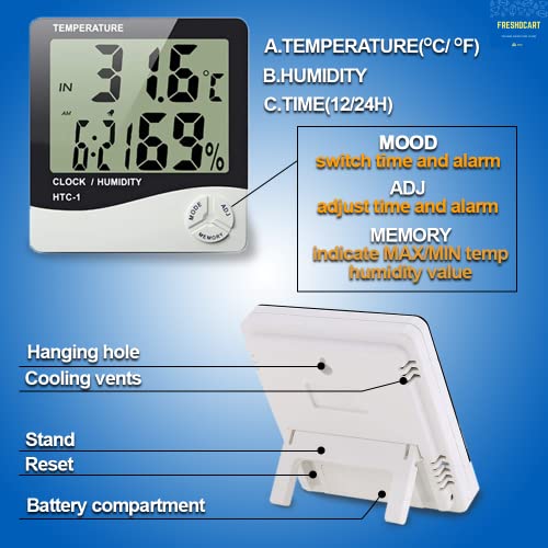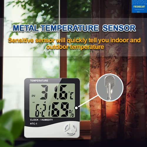 FreshDcart - FreshDcart HTC-1 Room Thermometer with Humidity Incubator Meter and Accurate Temperature Indicator Wall Mounting LCD Digital Clock Monitor for Indoor/Outdoor (White)