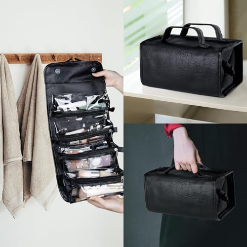 - High Quality Materials - The makeup bag is made of high-quality PU leather material, which is sturdy, durable, and has an excellent hand feel. Leather can effectively waterproof and easily remove stains, making it very suitable for use in the bathroom.