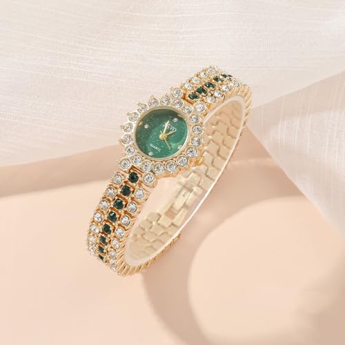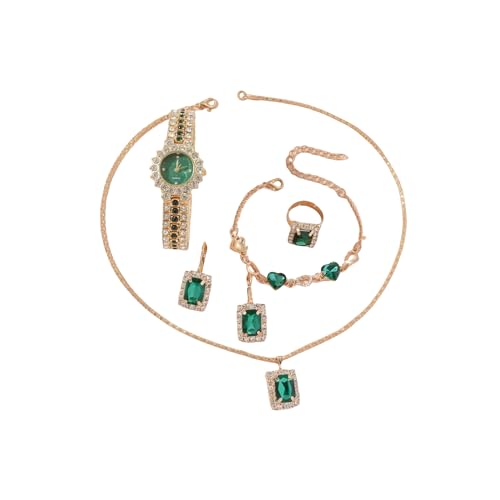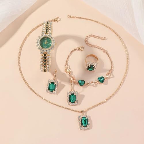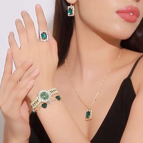 FRIDAYIN - FRIDAYIN Luxury Emerald Gemstone Jewelry Set (Watch, Bracelet, Necklace, Earrings, Ring) - Women's Modern Emerald Gemstone Jewelry - Green Emerald Stones - 18k Gold Plated - Suitable for Birthday &